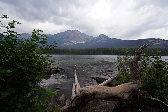 With lunch over we made our way up to Maligne Lake. The skies still looked a bit threatening but it was nice enough walking by the lake.