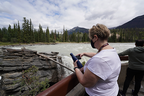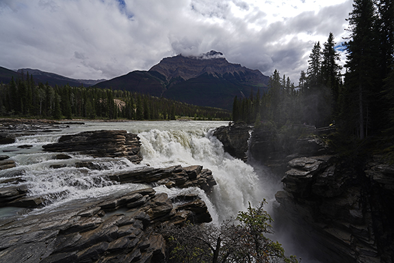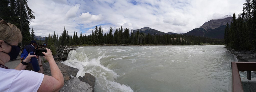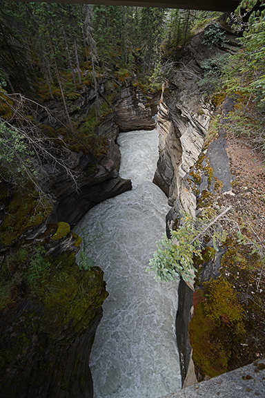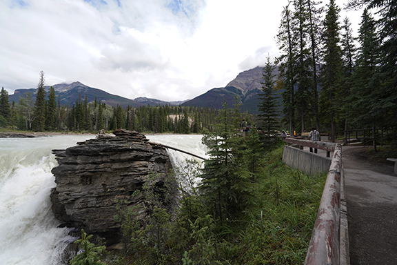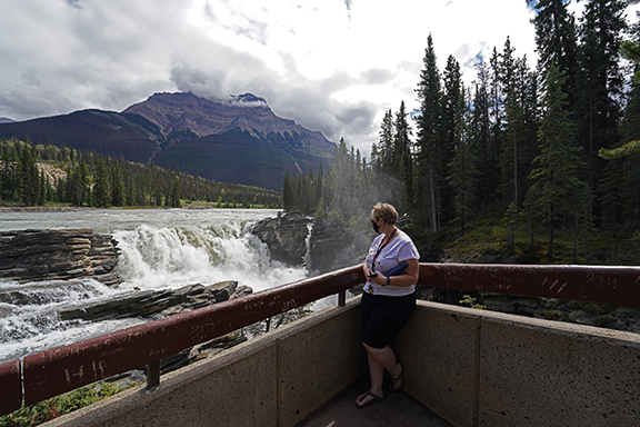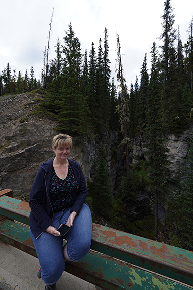 We decided to go to Athabasca Falls and as we headed out of town we saw a bunch of elk along the side of the road. (Would be the only elk we’d see.) Lynda wanted a picture so I stopped for her to grab a shot or two. We had barely stopped when I saw the park rangers driving along to keep people moving. As we were leaving I heard them yelling at someone to get back in their vehicle. I know it’s a safety thing but they do seem like such kill joys doing that. Lol.