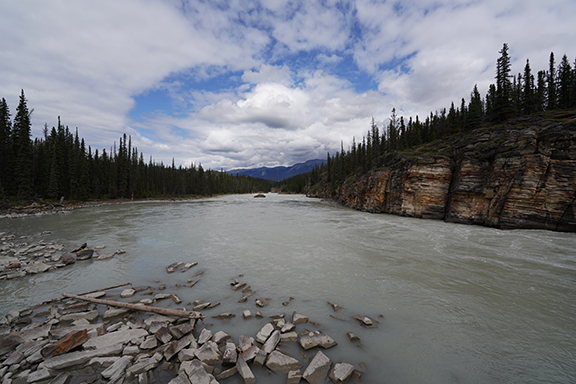 We crossed the road to watch and listen to the Athabasca River flowing past. Our moment of Zen done, we got back in the car and started our journey home.