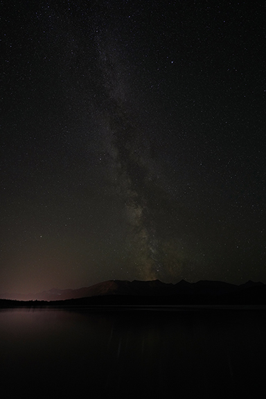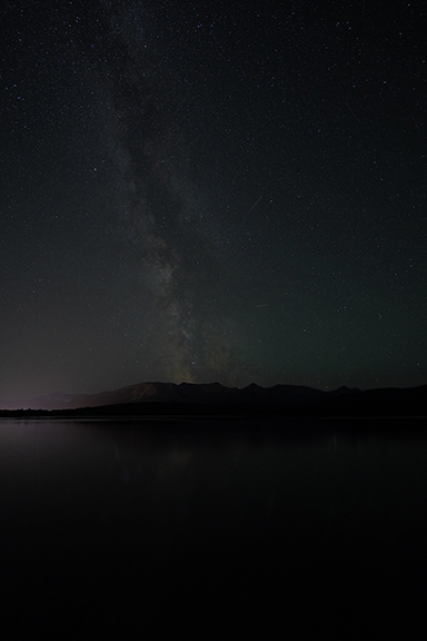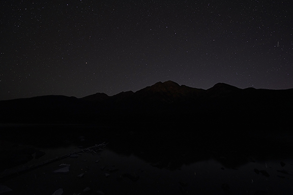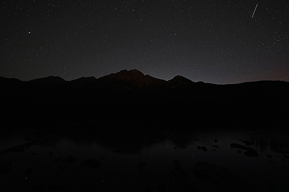 We checked the sky at 11 pm and it was clear so we headed back up to Pyramid Lake once again. There were a few cars there already and we headed over to Pyramid Island to get Pyramid Mountain as my background.