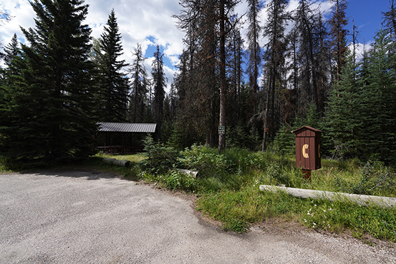 Lynda was scanning the ditches for wildlife but we saw nothing at all. We were going to check out the Whirlpool group campground but the gate was closed. As we were leaving I saw movement in the rear view mirror and saw a brown coloured black bear cross the road between us and the vehicle going the other way. He didn’t have any issues with the locked gate and continued on his way without us catching a good look at him.
